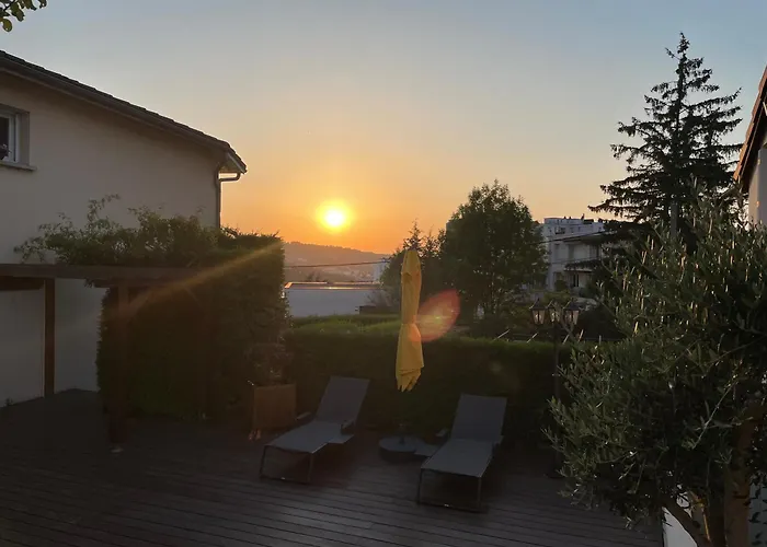 A La Maison Villa is situated 3 km from the centre of Saint-Etienne and features a terrace fitted with a swimming pool. An equipped kitchenette with a fridge, an oven, and kitchenware is included at the venue so that guests can cook for themselves.